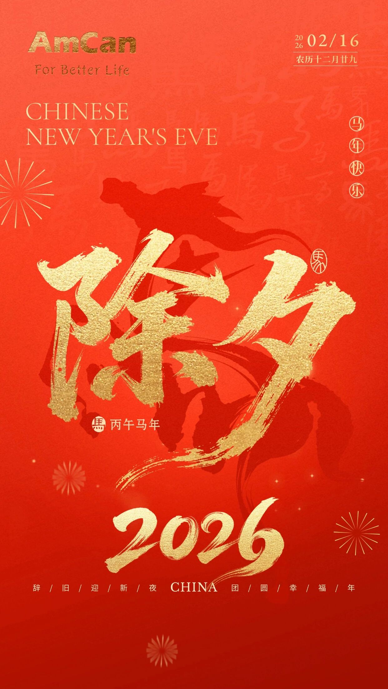 世界再大,过年回家。 在这个辞旧迎新的美好时刻,AmCan美加集团全体同仁,向身在世界各地的您,致以最诚挚的新春问候! 祝愿您和家人:新春大吉,万事顺遂,财源广进,所愿皆成!在新的天地里,大展宏图! 感谢您一直以来的信任与陪伴,新的一年,AmCan美加集团将继续秉持专业与诚信,做您通往世界的引路人,护航您的每一次出发!