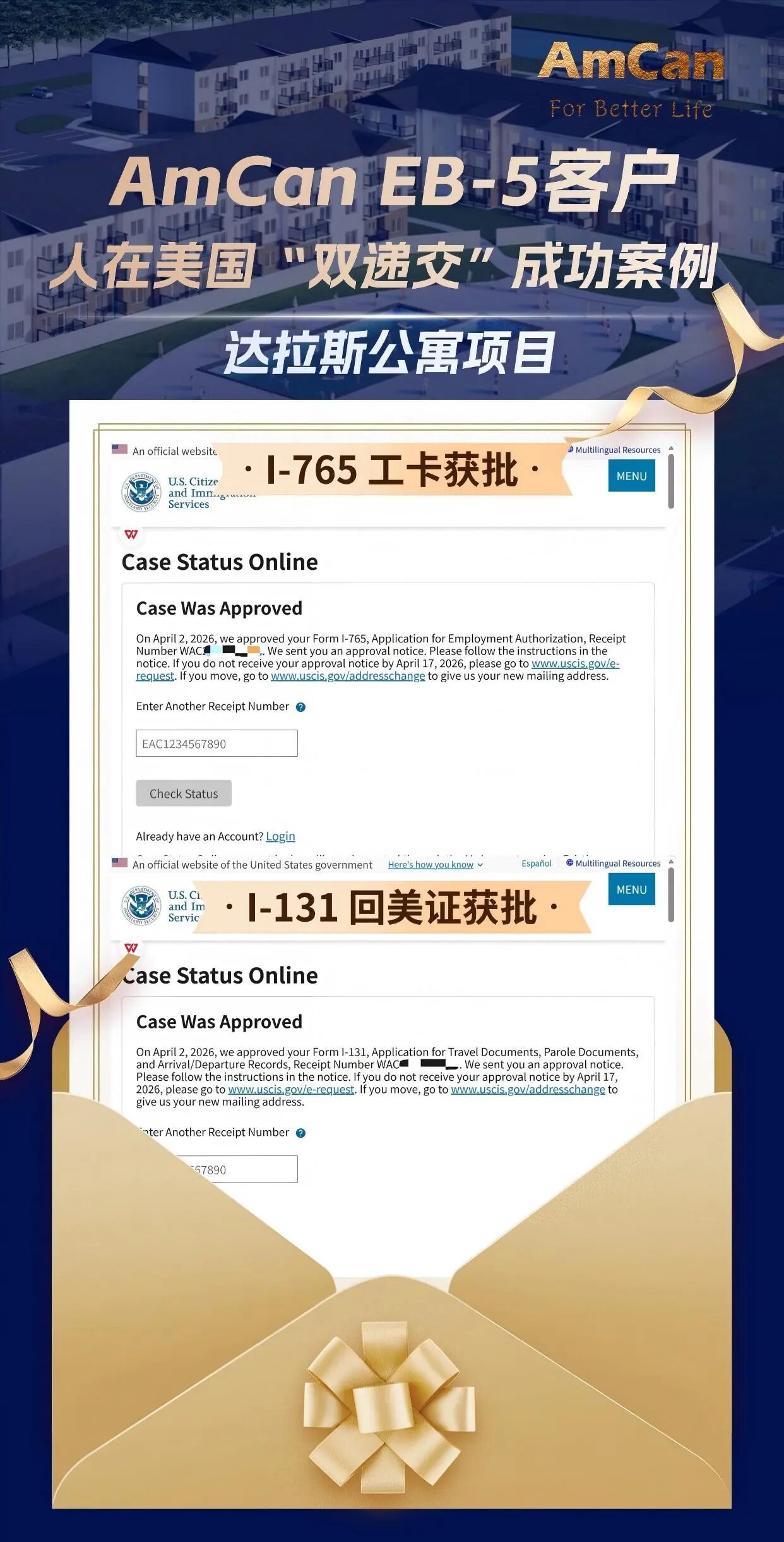 AmCan美加集团的自有乡村EB-5项目——达拉斯公寓二期项目全球发布会将于4月10日举行。作为该项目的源头项目方,AmCan美加集团直接掌控项目进度,确保项目安全有保证。该项目为A类稳健投资项目,具备无排期、第一顺位还款、I-526E拒签全额退款等核心优势,是目前市面上极具竞争力的稳健选择。该项目名额紧缺,全球仅52席名额,先到先得。