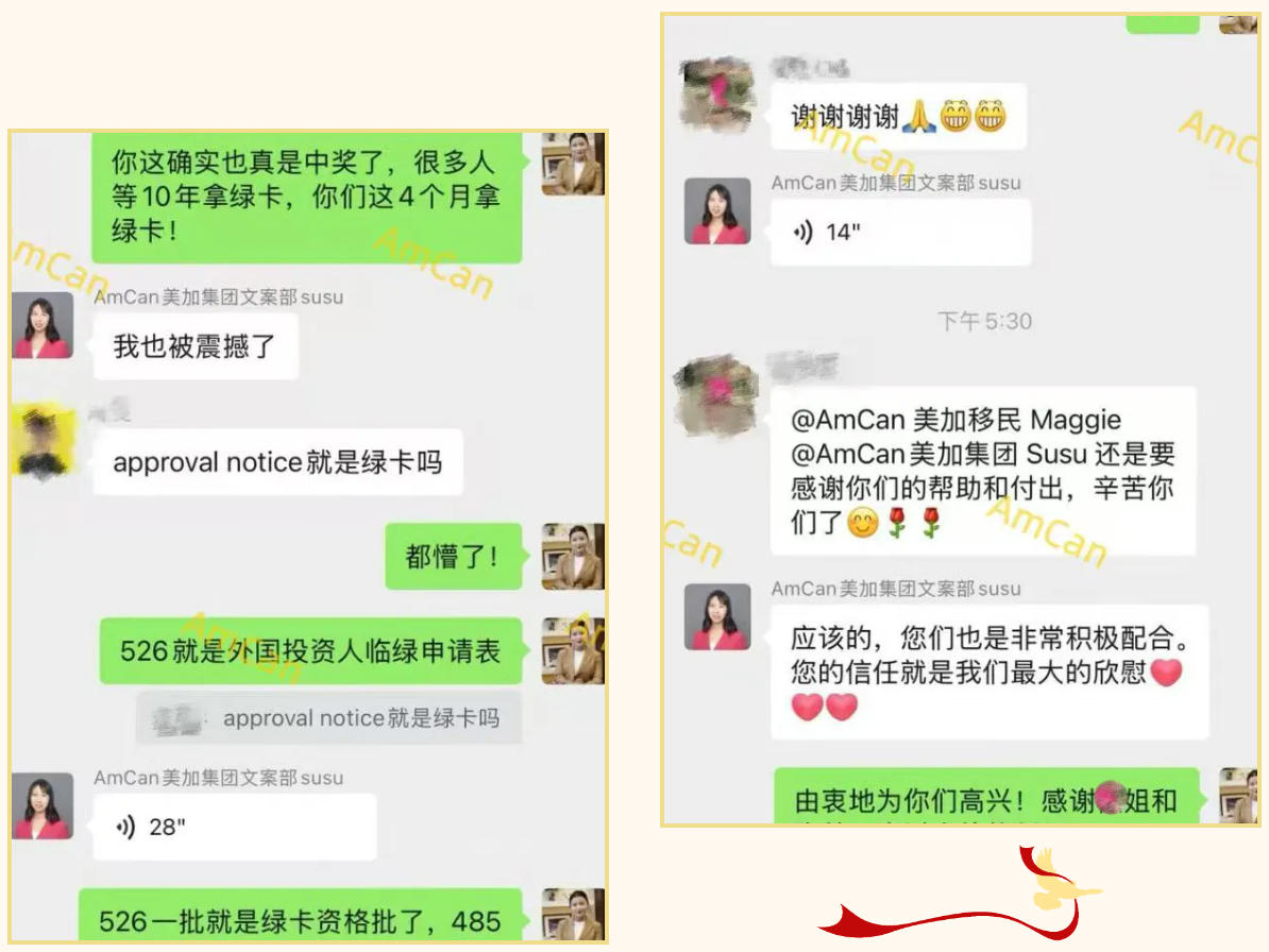 在接下来的流程中,W女士和其家庭成员体检完成后,将很快收到美国移民局寄出的绿卡。整个流程体现了AmCan美加集团在行业中的领先优势:不仅在速度,更在方案品质与风险控制方面。